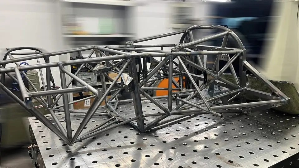 - Geteilter Grundaufbau der Fahrzeugstruktur aus Aluminium-Monocoque und Stahlgitterrohr- Heckrahmen aus dünnwandigem Chrom-Molybdän-Stahl (25CrMo4)